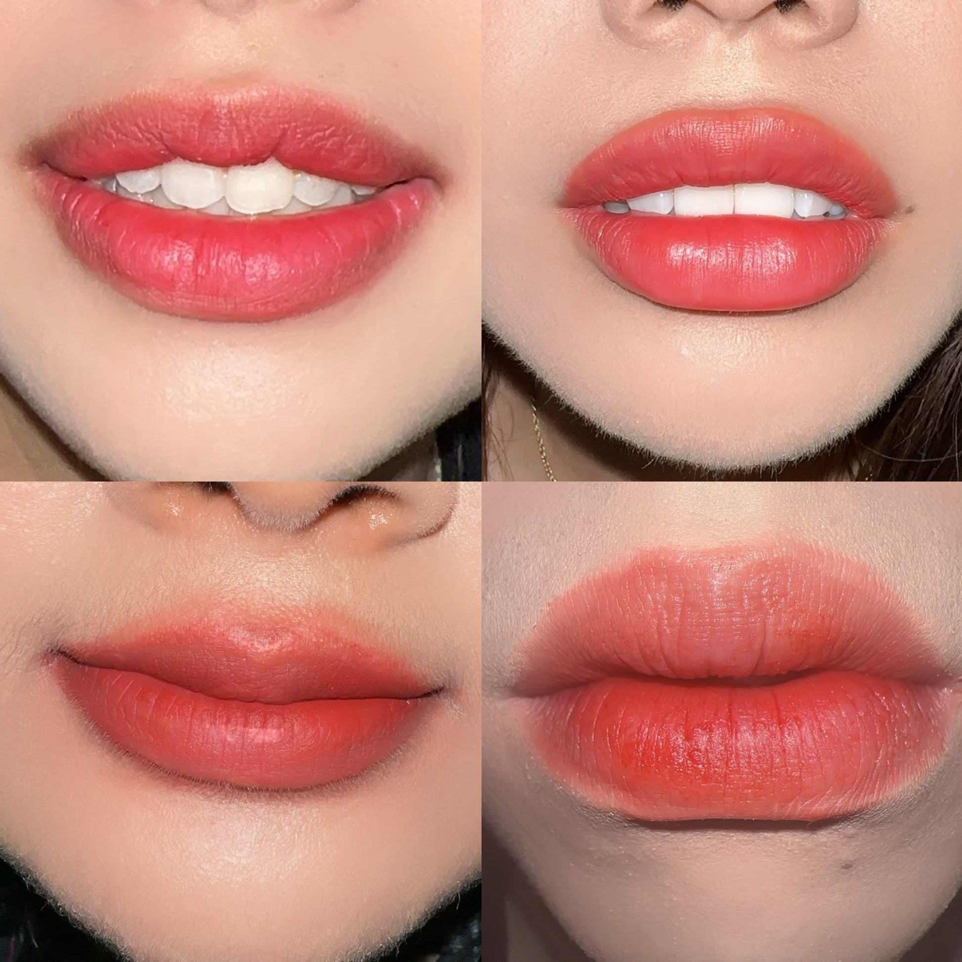 Different applications that are extremely buildable according to your preference! Despite being matte velvet finish, it’s not drying and long lasting! Please remember to scrub your lips before wearing it if you’d like the lipstick to last longer!